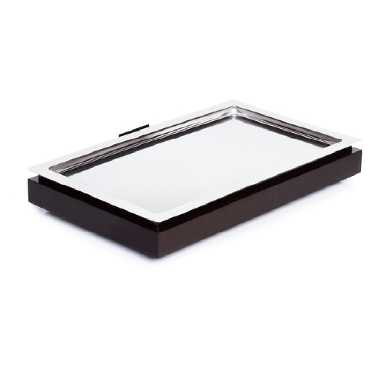 The Libbey APS 14940 Cooling Box Set GN 1/1 is a meticulously designed 3-piece set that meets the needs of professionals across various segments of the food service industry. Featuring dimensions of 20-7/8"L x 12-7/8"W x 3-3/8"H, this rectangular set offers ample space for presenting and cooling a wide range of culinary creations. The set includes a GN 1/1 18/10 stainless steel platter, known for its durability and resistance to corrosion, ensuring longevity and easy maintenance. Accompanied by a cooler, this set effectively maintains optimal temperatures, making it an indispensable tool for catering services, buffets, and banquets. The elegant black wooden base not only adds a touch of sophistication to the presentation but also provides stability and ease of transport. Crafted by APS® Germany, the set is stackable, allowing for efficient storage and space management. Each set is packed by case, underscoring its practical and professional application in high-demand environments. The Libbey APS 14940 Cooling Box Set is an exemplary choice for those who require a reliable, efficient, and visually appealing solution for food presentation and temperature control.