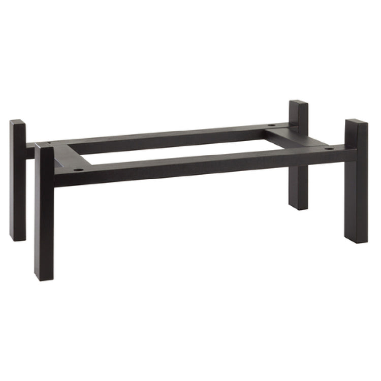 The Libbey APS 14953 Serving Stand is a meticulously crafted rectangular unit designed to enhance presentation and functionality in various dining and catering settings. Measuring 22-3/4 inches in length, 10-3/4 inches in width, and standing at 9-1/2 inches in height, this serving stand presents a perfect blend of form and function. Made from high-quality wood and finished in a sleek black, it offers an elegant yet sturdy platform for displaying culinary creations. Crafted in Germany, it exemplifies the precision and quality associated with German manufacturing, embodying the APS® Germany's commitment to excellence. This versatile serving stand is designed to accommodate a GN 1/1 tray or the APS 14956, making it an adaptable choice for various service requirements. Each stand is packed individually, ensuring it arrives in pristine condition. Its aesthetic appeal and robust build make the Libbey APS 14953 Serving Stand an exceptional choice for hotels, restaurants, and catering services aiming to elevate their presentation standards. Whether it's for showcasing appetizers, desserts, or main courses, this serving stand is an indispensable asset for creating memorable dining experiences.
