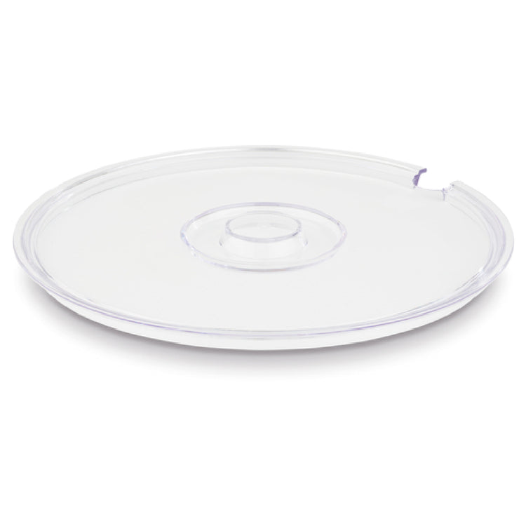 The Libbey APS 15343 Cover is a versatile and practical accessory designed for various settings within the food service industry. With a dimension of 10-1/2 inches in diameter and a height of 5/8 inch, this flat, round cover is engineered to be stackable, making it an efficient space-saving solution for any kitchen environment. It features a convenient spoon notch, enhancing its functionality by allowing for easy access to utensils without having to remove the cover entirely. Crafted from SAN (Styrene Acrylonitrile), this cover is not only durable but also clear, providing visibility of the contents while maintaining a sleek, professional appearance. Its compatibility with dishwashers ensures effortless cleaning and maintenance, saving time and effort in busy commercial kitchens. Manufactured by APS® Germany, the Libbey APS 15343 Cover is packed individually per case, ensuring each piece arrives in pristine condition. This product's universal design makes it suitable for a wide range of applications, from high-end restaurants to casual dining establishments, offering both practicality and elegance. Its thoughtful design and high-quality construction make it a valuable component in maintaining the efficiency and professionalism of any food service operation.
