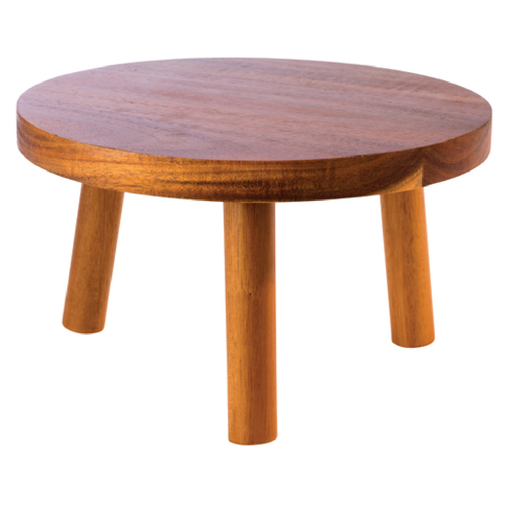 The Libbey APS 33256 Buffet Display Stand 9-7/8" Dia. X 6"H Large is a versatile and stylish addition to any food service setting. This large, round stand is crafted from premium acacia wood and finished in a warm caramel tone, showcasing both durability and aesthetic appeal. With its dimensions of 9-7/8 inches in diameter and 6 inches in height, the stand provides ample space for displaying an array of culinary creations, making it an ideal choice for buffets and catering events. The stackable design allows for convenient storage and transport, optimizing space efficiency for busy environments. The stand is part of the Element collection by APSĀ® Germany, reflecting a commitment to quality and innovation in the food service industry. Each unit is packed by case, ensuring safe and secure delivery. This display stand caters to a wide range of market segments, from high-end hotels and banquet halls to casual dining and catering services, accommodating diverse presentation needs with its combination of practicality and elegance.