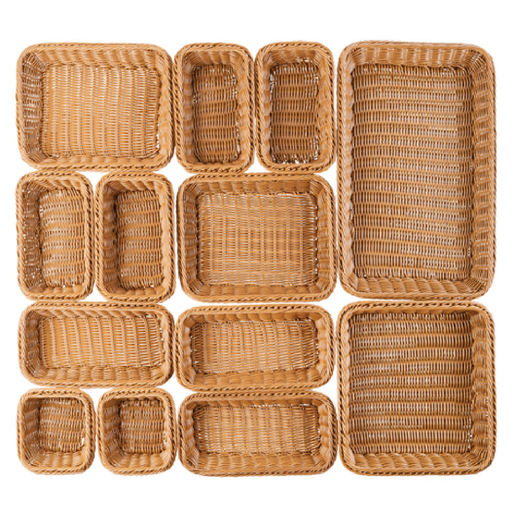 The Libbey APS 40246 Basket GN 1/4 is a rectangular, stackable storage solution measuring 10-7/8 inches in length, 6-1/2 inches in width, and 4-1/4 inches in height. It is hand-braided and constructed with a stainless steel wire frame, offering durability and stability. The basket features a warm wicker matte finish, crafted from polypropylene, which adds an elegant touch suitable for various environments. Its dishwasher-safe design ensures easy cleaning, making it a practical choice for busy settings. The APS 40246 is part of the GN Line by APS® Germany, noted for its quality and functionality. With 36 units per case, it is ideal for hospitality and catering industries, providing ample storage capacity while maintaining an aesthetically pleasing presentation. This basket combines traditional craftsmanship with modern materials, making it versatile for different market segments, from upscale dining establishments to casual eateries. Its stackable feature optimizes space, allowing for efficient storage and organization. The Libbey APS 40246 Basket is a reliable accessory that enhances the efficiency and decor of any professional kitchen or dining area.