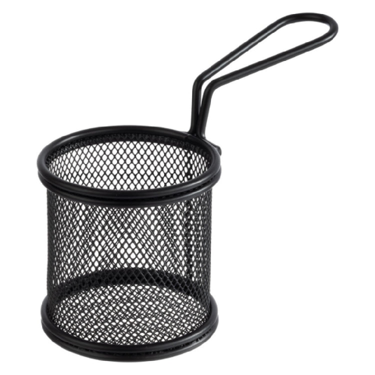 The Libbey APS 40624 Fry Basket, with a precise diameter of 3-1/8 inches, is a round culinary tool crafted for excellence in both design and functionality. Manufactured by APS Germany and distributed by Cs, this fry basket is constructed from premium stainless steel, ensuring durability and resistance to corrosion, making it an essential accessory for professional kitchens and food service establishments. The black matte finish adds a modern touch to its appearance, enhancing its visual appeal while maintaining practicality. Designed to be dishwasher safe, this fry basket offers convenience in maintenance and cleaning, crucial for busy food service environments. Its compact size and sturdy construction make it ideal for presenting snacks and small fried items, catering to both casual and upscale dining experiences. The Libbey APS 40624 is a versatile product that seamlessly integrates into various segments of the food industry, from restaurants and cafes to catering services, providing an efficient solution for food presentation and serving needs.