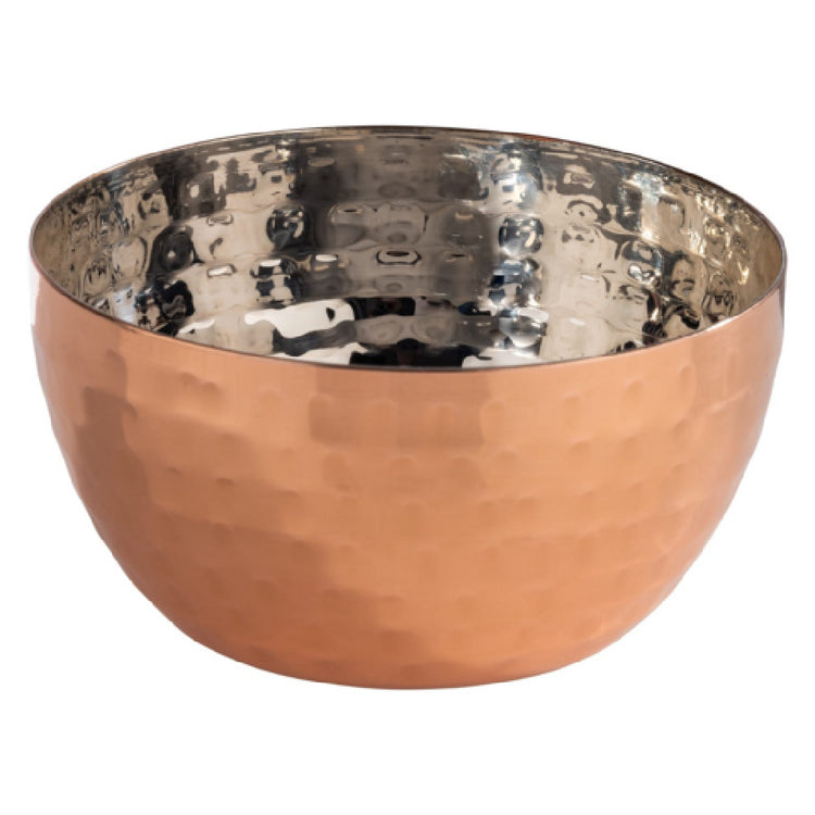 The Libbey APS 40738 Bowl is a versatile and stylish serving option designed to meet diverse industry needs, with a capacity of 6.7 ounces. This round bowl measures 3-1/2 inches in diameter and stands 2 inches tall, offering a compact yet functional size suitable for various culinary applications. Its hammered finish adds a touch of sophistication and visual appeal, making it a standout piece in any dining setting. Constructed from high-quality copper and aluminum materials, this bowl ensures durability and longevity, making it an excellent investment for restaurant and catering professionals seeking reliable service ware. The Libbey APS 40738 Bowl is dishwasher safe, facilitating easy cleaning and maintenance, which is crucial for busy food service environments. Sourced from APS Germany, its craftsmanship reflects a commitment to quality and excellence. This product is part of the Mumbai Serving Pots collection, embodying a blend of traditional and contemporary design elements. Whether used in upscale dining establishments, casual eateries, or catering events, the Libbey APS 40738 Bowl delivers both functionality and aesthetic value, catering to the needs of chefs, restaurateurs, and event planners seeking distinctive tableware solutions.