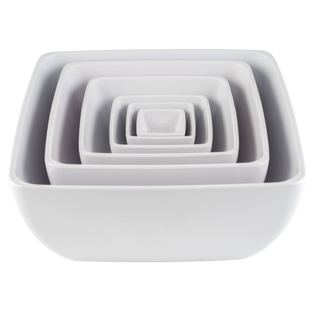 The Libbey APS 83409 Bowl is a versatile piece designed for both functionality and elegance, perfect for various food service environments. With a substantial capacity of 50-3/4 oz., this bowl is ideal for serving large portions or shared dishes. Its dimensions - 7-1/2"L x 7-1/2"W x 3-5/8"H - highlight a square, stackable design that maximizes storage efficiency and space savings in busy kitchen settings. Constructed from durable melamine, the bowl is not only lightweight but also dishwasher safe, ensuring easy and convenient cleaning. The pristine white color adds a touch of sophistication to any table setting, seamlessly blending with diverse décors. Belonging to the esteemed Pure line under the APS® brand, this bowl is available in cases of five, making it a practical choice for culinary professionals. Its robust build and thoughtful features cater to the demands of catering services, restaurants, and hospitality businesses seeking reliable and stylish serving solutions.