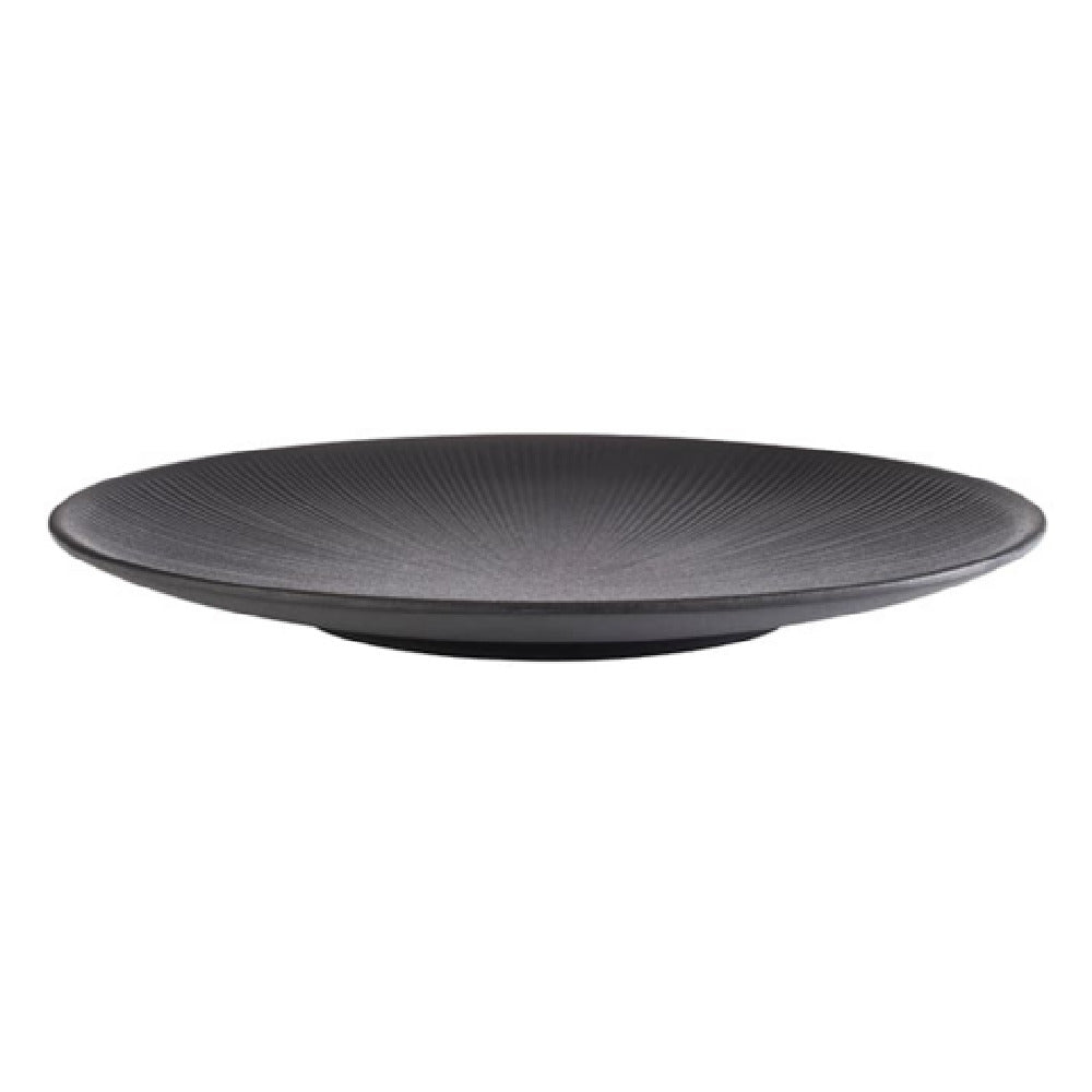 The Libbey APS 85065 Nero Plate - 13" dia x 1-3/8"H, round - is a distinctively designed dinnerware piece ideal for both residential and commercial settings. Crafted from high-quality melamine, this plate promises durability with its scratch and shock-proof features, ensuring longevity even with frequent use. Its stackable nature adds practicality, making it a space-saving option for busy kitchens. The plate's acid-resistant property enhances its resilience, catering to diverse culinary applications. It is dishwasher safe, promoting ease of cleaning and maintenance, which is crucial in high-paced environments. The Nero Plate's aesthetic appeal lies in its black color and ribbed texture, paired with a soft matte finish, creating a sophisticated look that complements various dining settings. Produced by APS Germany, this plate is available one per case, highlighting its exclusivity. With its combination of functional durability and elegant design, the Libbey APS 85065 Nero Plate caters to different market segments, including restaurants, hotels, and catering services, seeking reliable and stylish tableware solutions.