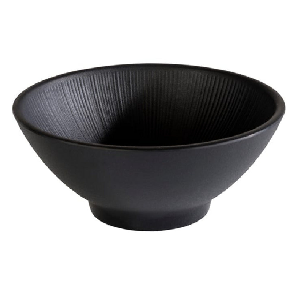 The Libbey APS 85069 Nero Ramen Bowl is a versatile dining essential, designed to enhance both functionality and aesthetics in food presentation. With a capacity of 16 oz. and dimensions of 6-3/8" diameter by 2-1/2" height, this bowl is perfectly sized for serving traditional ramen, soups, and other culinary creations. Its round shape and stackable feature make it a practical choice for food service establishments looking to maximize space efficiency. Constructed from durable melamine, the bowl is engineered to be scratch and shock proof, ensuring longevity in high-traffic environments. Furthermore, its acid-resistant property enhances its resilience against various food ingredients, while being dishwasher safe ensures ease of cleaning and maintenance. The bowl's black color, coupled with a ribbed texture and a soft matte finish, offers a sophisticated and modern appearance that complements diverse dining settings. Manufactured by APS Germany, this product combines quality with an elegant design, making it a popular choice for restaurants, cafes, and catering services seeking reliable and stylish serveware. Packaged individually per case, the Libbey APS 85069 Nero Ramen Bowl stands out as a functional and durable solution for industry professionals aiming to provide an exceptional dining experience.