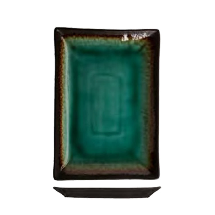 The Libbey BF-13, previously known as World Tableware Platter, is a meticulously designed 13-1/2" x 9-1/4" rectangular platter, crafted from high-quality glazed ceramic. Its standout feature is its striking turquoise color, beautifully accentuated by a dark brown rim, making it a visually appealing addition to any dining setting. This platter is part of the Hakone™ collection and is packaged with 12 pieces per case, ensuring ample supply for various needs. The Libbey BF-13 platter is ideal for upscale restaurants seeking to enhance their presentation with unique and stylish serveware, providing a perfect canvas for chefs to showcase their culinary creations. Its durable construction ensures it withstands the rigors of high-volume food service environments. This platter's distinctive aesthetics and reliable performance make it suitable for a range of markets, from casual dining to fine dining establishments, where presentation and durability are key. Its size and design also make it versatile enough for serving a variety of dishes, from appetizers to main courses, enhancing the dining experience across diverse culinary applications.