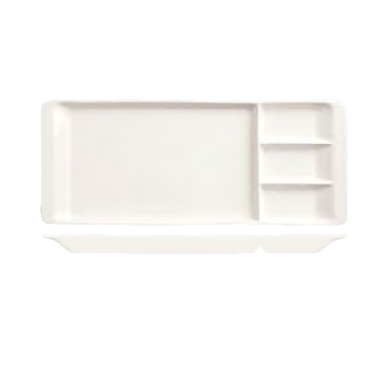Libbey, BW-3331, (Formerly World Tableware) Plate/Tray, 15-1/4" x 6-1/4", rectangular, 4-compartments, with (3) 1-3/4 oz. wells, porcelain, ultra bright white, Chef's Selection II (12 each per case) (Packed By: Cs)