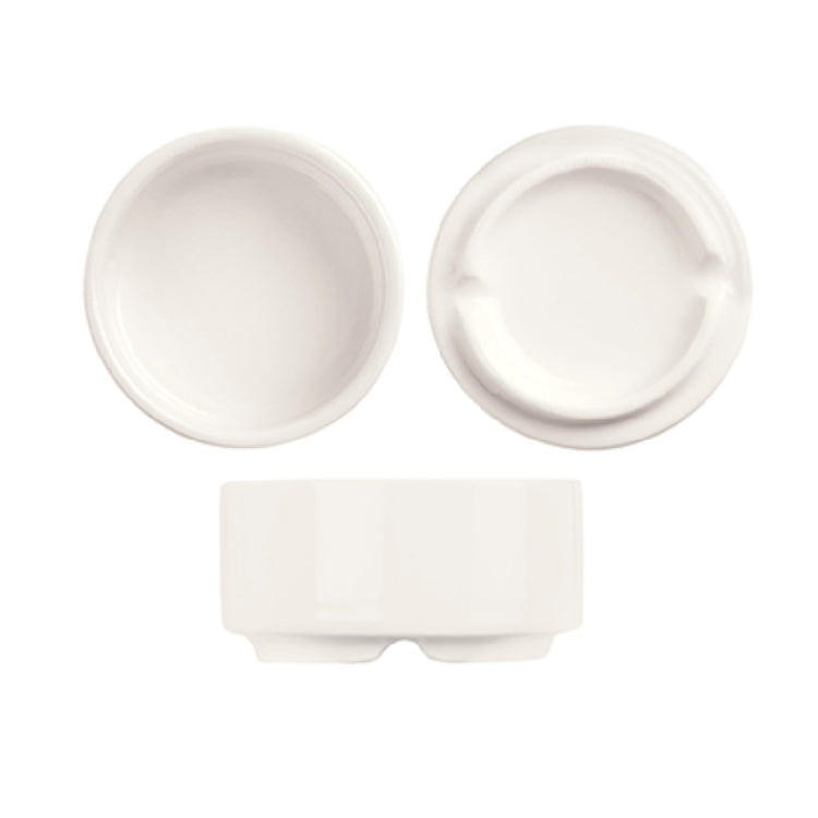 The Libbey BW-6714, formerly known as the World Tableware Monorail Bowl, is a meticulously crafted porcelain bowl with a sleek, ultra-bright white finish that adds elegance to any table setting. This bowl, part of the Chef's Selection II, is designed with a distinctive slotted bottom and measures 2-1/2 oz. in volume, with a diameter of 2-3/4 inches and a height of 1-3/8 inches. The base of the bowl features a 2-1/8 inch diameter foot, providing stability and making it a perfect fit for model BW-6713. The Libbey BW-6714 is available in cases of 36, making it an efficient choice for large-scale dining establishments, catering services, or even upscale home dining experiences. Its compact size and sophisticated design meet the diverse needs of the food service industry, appealing to chefs and restaurateurs who seek both functionality and aesthetic appeal in their serviceware. This bowl's design and material ensure durability and a premium look, making it an excellent choice for showcasing appetizers, desserts, or small portions with style and finesse.