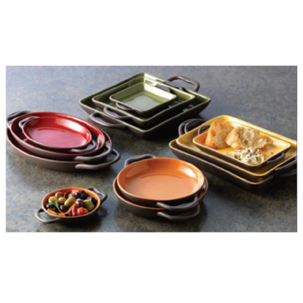 The Libbey CBP-002, formerly known as the World Tableware Dish, is a versatile ceramic piece that combines functionality with aesthetic appeal for diverse market segments. With a capacity of 10 ounces, this dish is ideal for serving a variety of culinary creations, from appetizers to individual desserts. Measuring 7-7/8 inches by 6 inches overall, the dish features a round shape complemented by practical handles, enhancing ease of use in both residential and commercial settings. The two-tone ceramic design, featuring a vibrant pumpkin color, adds a touch of elegance and warmth to any table setting. Notably, the dish is heat resistant up to 350°F, making it suitable for use in ovens, allowing chefs and home cooks alike to transition seamlessly from cooking to serving. Packaged in sets of 12 per case, the Libbey CBP-002 is designed for efficiency and convenience, catering to the needs of restaurants, catering services, and hospitality businesses that require durable and stylish tableware. Its robust construction ensures longevity, while its stylish design enhances presentation, making it a valuable asset in any dining environment. The Coos Bay™ branding further emphasizes its quality and craftsmanship, appealing to those seeking reliable and attractive tableware solutions.