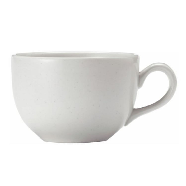 The Libbey DRI-12-D (Formerly World Tableware) Cup 7-3/4 Oz. With Handle is an elegantly crafted piece designed for versatility across various dining establishments. This cup is fully vitrified, ensuring remarkable durability and resistance to chipping, making it a reliable choice for high-traffic environments. Its construction from porcelain gives it a sophisticated look and feel, while the satin matte finish in driftwood and Driftstone hues adds a contemporary flair to any table setting. Measuring H 2-3/8", T 3-5/8", F 1-7/8", and D 4-1/2", it provides a comfortable grip with its handle, enhancing user experience. Packaged 12 per case, the Libbey DRI-12-D is ideal for restaurants, cafes, and hotels seeking a blend of style and functionality. Its capacity of 7-3/4 ounces is perfectly suited for serving coffee, tea, or other beverages, meeting the demands of both casual and upscale dining settings. This cup's design seamlessly complements a variety of tableware collections, making it a versatile addition to any service. With its durable construction and aesthetic appeal, the Libbey DRI-12-D cup is an exceptional choice for establishments prioritizing both quality and elegance in their service ware.