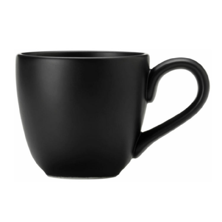 The Libbey DRI-13-O (Formerly World Tableware) Mug 12 Oz. with Handle is a meticulously crafted piece, perfect for a variety of market segments within the hospitality industry. This mug, holding 12 ounces, is made from fully vitrified porcelain, ensuring durability and resistance to chipping. It features a satin matte finish and comes in an onyx color, lending an elegant and modern aesthetic. The mug is part of the Driftstone collection, known for its unique and stylish designs. Measuring 3-1/2 inches in height, 3-5/8 inches at the top, 2 inches at the foot, and 5 inches in diameter, it offers a comfortable grip and a refined drinking experience. The inclusion of a handle enhances its functionality, catering to both aesthetic appeal and practical use. Each case contains 12 mugs, making it an excellent choice for restaurants, cafes, and catering services looking to elevate their beverage presentation. The Libbey DRI-13-O stands out for its combination of style and substance, aligning with the needs of establishments that prioritize quality and design in their tableware selections.