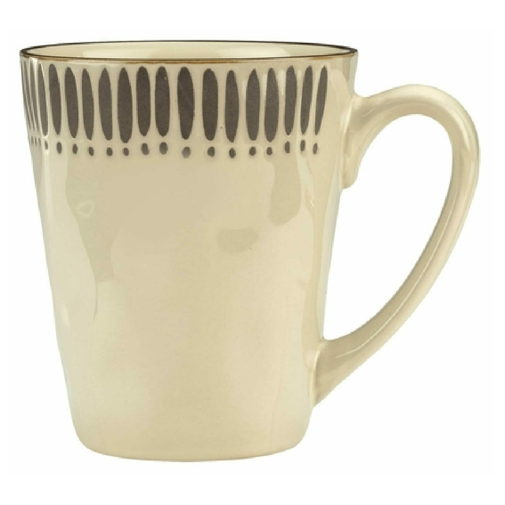 The Libbey DULCET-6C (Formerly World Tableware) Mug 13 Oz. With Handle is a versatile and durable stoneware option, perfect for a range of dining and hospitality environments. This mug features a 13-ounce capacity, making it ideal for serving a variety of hot beverages. It is designed with a convenient handle, ensuring ease of use for all patrons. The mug is both dishwasher and microwave safe, offering practicality and convenience for busy kitchens. Its stoneware construction lends durability, while the cream color with a line above dot adds a touch of elegance and sophistication to any table setting. With dimensions of H 4-5/8", W 5-3/8", and L 3-7/8", the Libbey DULCET-6C is compact yet ample enough to satisfy different customer needs. Each case contains 12 mugs, making it a practical choice for establishments needing bulk supplies. Whether for a bustling café, a refined restaurant, or a cozy home setting, this mug provides a reliable and stylish solution for serving coffee, tea, or other beverages with flair.