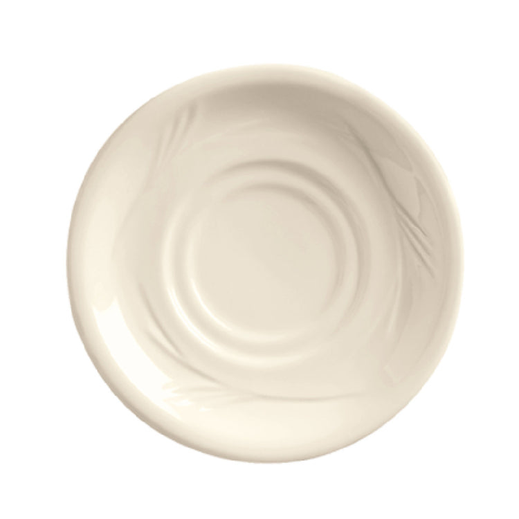 The Libbey END-15 (Formerly World Tableware) Saucer, with a diameter of 5-1/2 inches and a 2-inch diameter foot, is a meticulously crafted piece of porcelain dinnerware. This saucer features a double well design, consisting of a 2-3/4 inch outer well and a 2-inch inner well, providing practical versatility for various serving needs. Fully vitrified and crafted from cream white porcelain, the saucer not only exudes elegance but is also designed for durability and longevity in rigorous dining environments. With its round shape and sturdy construction, it is part of the Endurance line, making it an ideal choice for restaurants, hotels, and catering services seeking reliable and visually appealing tableware. The saucer is packaged in cases of 36, providing an efficient solution for large-scale dining operations. Its high-quality materials and design make it suitable for both casual and formal settings, appealing to various segments within the hospitality industry. The Libbey END-15 saucer effectively combines aesthetic charm with functional robustness, thus serving as a valuable addition to any dining collection.