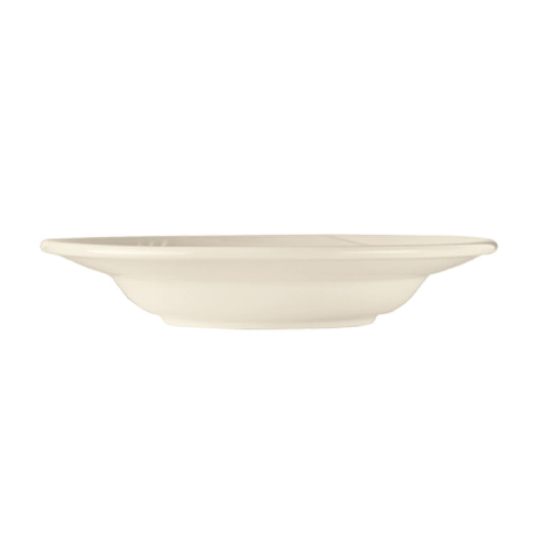 The Libbey END-24 Rim Soup Bowl stands as a high-quality dinnerware option, formerly recognized under the World Tableware brand. This soup bowl features a 13 oz. capacity and measures 9 inches in diameter with a height of 1-3/4 inches, providing ample space for serving soups and other liquid-based dishes. Its round shape and fully vitrified porcelain construction ensure both durability and elegance, making it suitable for a variety of dining settings, from casual to fine dining. The cream-white color of the bowl adds a touch of sophistication, complementing a wide range of table settings and culinary presentations. The Endurance collection offers this item in a case of 36, catering to both large-scale food service operations and smaller establishments that require high-volume supply. This bowl is ideal for restaurants, catering services, and hotels that prioritize both style and resilience in their tableware selections. Its robust construction and classic design make it a versatile choice for enhancing dining experiences while ensuring long-lasting use in commercial environments.