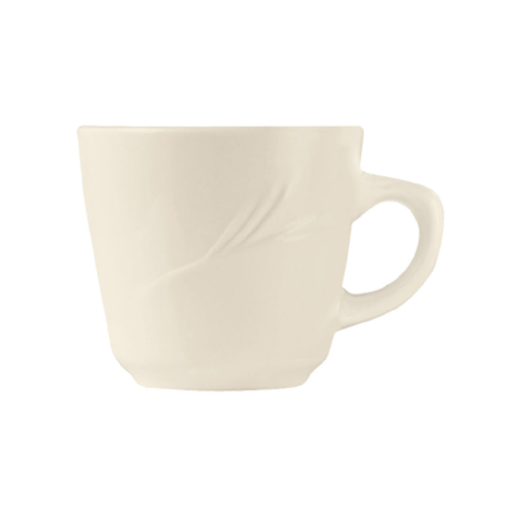 The Libbey END-3 (Formerly World Tableware) Cup 7 Oz. Tall is a premium porcelain cup designed for durability and elegance. This cup boasts a capacity of 7 ounces, making it suitable for various beverage servings, from artisanal coffees to delicate teas. It stands tall with a height of 3 inches, complemented by a top diameter of 3-1/4 inches, a foot diameter of 1-7/8 inches, and an overall diameter of 4-1/8 inches, providing a balanced and comfortable grip. Fully vitrified, this cream white porcelain cup is part of the Endurance collection and fits seamlessly with the compatible saucer END-15, enhancing its usability in professional dining settings. The cup is packed efficiently, with 36 units per case, ensuring a cost-effective solution for restaurants, cafes, and catering services seeking both quality and quantity. Its classic design and robust construction make it an ideal choice for hospitality venues looking to maintain high standards of presentation and functionality. The Libbey END-3 cup serves diverse market segments by offering a product that is both aesthetically pleasing and practically designed to withstand the demands of a dynamic dining environment.