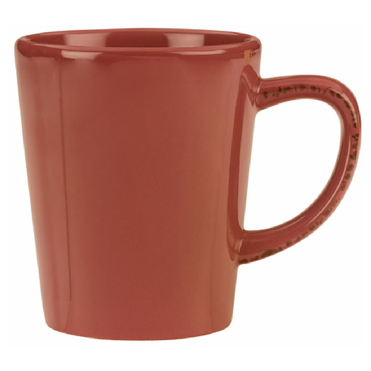 The Libbey FH-517R, previously known as the World Tableware Mug, is a 12-ounce glazed porcelain mug designed for durability and style. This mug is scratch-resistant and fully vitrified, ensuring it withstands frequent use and maintains its pristine appearance over time. Its barn red hue is part of the Farmhouse® collection, contributing a rustic charm to any table setting. The mug's dimensions are meticulously crafted: a height of 4 inches, a top diameter of 3-1/2 inches, a foot diameter of 2-9/16 inches, and an overall diameter of 4-7/8 inches. These specific measurements make it a versatile choice for various settings from casual dining environments to refined hospitality venues. The Libbey FH-517R is sold in cases of 36, providing an efficient solution for businesses seeking to enhance their tableware collections with a product that combines aesthetic appeal and practicality. Ideal for the foodservice industry, this mug caters to diverse market segments by offering a balance of traditional design and modern durability. Its robust construction and elegant finish make it a valuable addition to any establishment, promising both functionality and a touch of elegance.