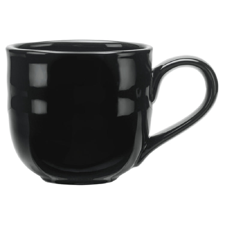 The Libbey PEB-15-O Mug 11-5/8 Oz. With Handle is a premium porcelain mug designed for both aesthetic appeal and functional durability. This mug features a fully vitrified construction, ensuring resilience against daily wear while maintaining a high gloss finish that enhances its visual allure. It's part of the Reserve by Libbey collection and comes in a striking Obsidian color, making it a sophisticated choice for various settings, from upscale restaurants to cozy cafés. The mug's dimensions include a height of 3-1/4 inches, a top diameter of 3-1/2 inches, a foot diameter of 1-7/8 inches, and an overall diameter of 5 inches, providing a comfortable grip and sufficient space for beverages. With a volume capacity of 11-5/8 ounces, it is perfectly suited for serving moderate portions of coffee, tea, or hot chocolate. For businesses, this mug is packaged with 12 pieces per case, offering an economical solution for outfitment in hospitality environments. The Libbey PEB-15-O Mug embodies a blend of elegance and practicality, making it a valuable addition for sectors prioritizing both durability and style in their drinkware selection.