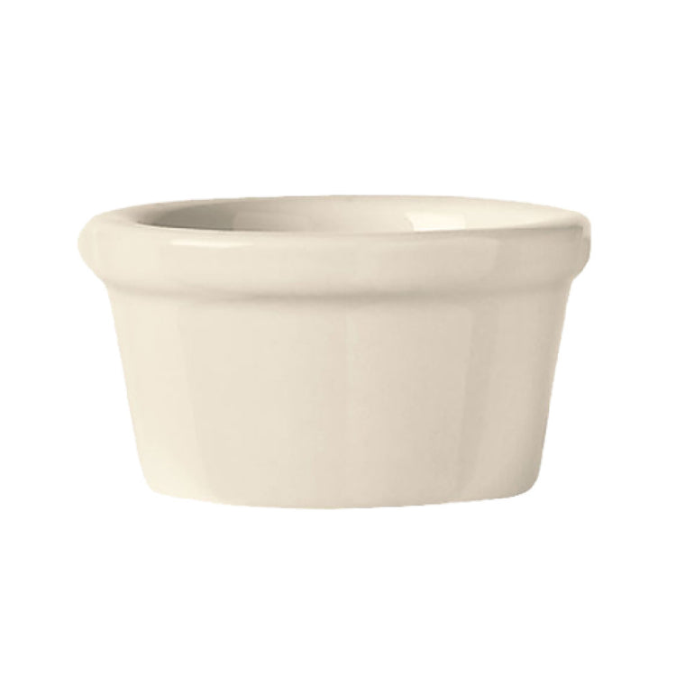The Libbey RAM-25-W Ramekin 2-1/2 Oz. 2-7/8" Dia. X 1-1/8"H is a versatile and practical item that caters to a wide array of culinary needs. This round ramekin, available in a charming cream white, is part of the Bedrock Ovenware collection, known for its durability and strength. The Ultima® technology ensures it withstands the demands of regular use in both commercial and home kitchens. Measuring 2-7/8 inches in diameter and 1-1/8 inches in height, it offers a compact design that is perfect for serving individual portions or condiments with precision. With a capacity of 2-1/2 ounces, it is ideal for portion control in professional food service settings. Each case contains 24 pieces, making it an economical choice for restaurants, catering services, and hospitality venues. The ramekin's robust construction allows it to perform well under various cooking conditions, while its elegant appearance enhances table presentation. The Libbey RAM-25-W's balance of form and function makes it a reliable choice for chefs and culinary enthusiasts looking to present their creations with flair and efficiency.