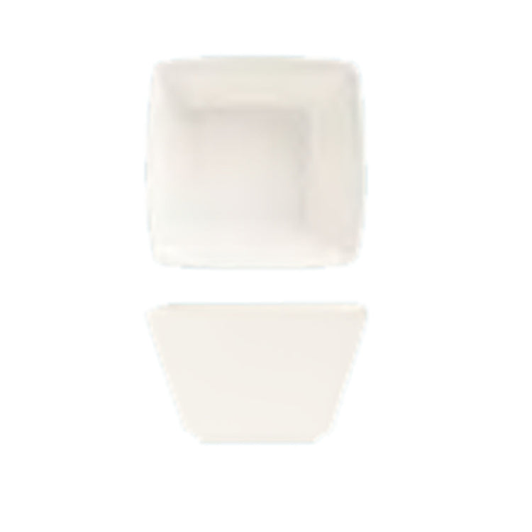 The Libbey SL-8 (Formerly World Tableware) Bouillon 8 Oz. 3-5/8" x 2-1/8"H is a well-crafted piece of porcelain dinnerware, ideal for the hospitality industry and beyond. With its square design and dimensions, this bouillon bowl stands out with a width of 3-5/8 inches, a height of 2-1/8 inches, and a 2-inch foot, providing stability and a contemporary look. Its ultra-bright white Slate⢠finish enhances its elegance, making it a versatile addition to any table setting. Each case includes 36 pieces, ensuring ample supply for high-volume settings such as restaurants, hotels, and catering services. The Libbey SL-8 is designed to fit the saucer SL-31 and tray SL-29, allowing for seamless integration with existing tableware collections. Its durable porcelain construction ensures long-lasting use, maintaining its pristine appearance even in demanding environments. This product is perfect for culinary presentations, offering a stylish and functional option for serving soups, broths, or small portions in various dining settings. The SL-8's combination of aesthetic appeal and practical design makes it a valuable choice for businesses seeking to enhance their dining experience with quality and sophistication.