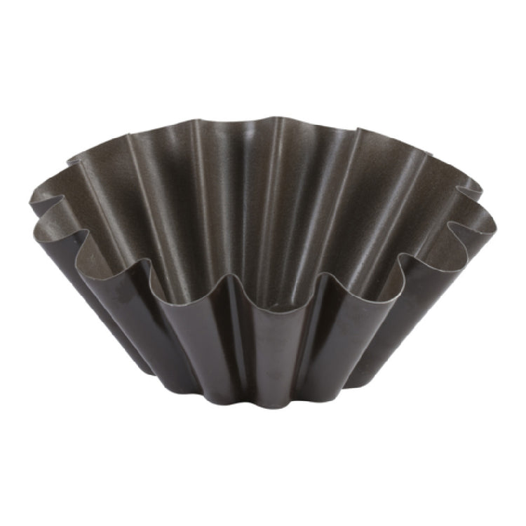 The Louis Tellier 223040 Brioche Mould, measuring 7.87 inches in diameter and 2.80 inches in height, is a continental-style baking tool specifically designed for crafting perfect brioche and other similar baked goods. Featuring a non-stick surface, this mould ensures easy release and effortless cleaning, enhancing the efficiency of the baking process. The wide ribs on the mould contribute to its distinctive design, creating a beautiful texture on the finished product while ensuring even heat distribution for uniformly baked goods. Its flat bottom design aids in stability during baking, making it a reliable choice for both amateur bakers and professional chefs alike. The Louis Tellier 223040 Brioche Mould is particularly valued in culinary circles for its ability to produce consistently high-quality results, making it an essential tool in professional kitchens, bakeries, and home baking settings. This mould caters to a wide range of market segments within the baking industry, from artisanal bakeries to large-scale commercial bakeries, due to its reliable performance and ease of use. Its robust construction and functional design underline its practicality, offering an excellent blend of durability and style for varied baking needs.
