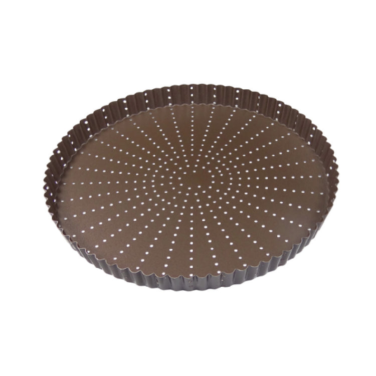 The Louis Tellier 226331 Tart Mould is a distinctive baking tool featuring a 9.44-inch diameter and a 1-inch height, crafted to elevate the art of tart creation. This mould is designed with a perforated fluted edge, which allows for superior heat distribution during baking, ensuring a perfectly cooked crust every time. The non-stick surface of the Louis Tellier 226331 Tart Mould facilitates easy release of delicate pastries, reducing the risk of breakage and maintaining the integrity of your creations. Its size and features are particularly advantageous for professional chefs and home bakers who require precision and reliability in their bakeware. The perforated design not only enhances baking performance but also contributes to a crispier and more evenly browned pastry, catering to the demands of high-end patisserie. This tart mould is an invaluable addition to any culinary toolkit, providing both durability and performance, and is ideally suited for a variety of market segments including commercial kitchens, artisanal bakeries, and dedicated home cooks who appreciate professional-grade baking equipment. The thoughtful engineering behind the Louis Tellier 226331 Tart Mould reflects a commitment to quality and innovation in the culinary arts.