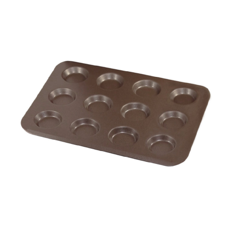 The Louis Tellier 228310 Tartlet Pan is an expertly designed baking accessory, measuring 12.59"W x 9.65"D x 0.39"H, and accommodating up to 12 cup cakes. This tartlet pan is constructed with non-stick material, enhancing its functionality and ease of use in any culinary setting. Each cavity within the pan is precisely 2.16" in diameter, ensuring consistent results across all bakes. The pan comes in a stylish brown finish, adding a touch of sophistication to its practical design. The Louis Tellier 228310 Tartlet Pan is suitable for professional chefs and home bakers alike, providing reliable performance across a variety of recipes and baking needs. With a focus on technical excellence, this tartlet pan ensures even heat distribution, reducing the risk of over-baking or under-baking. Its non-stick property not only facilitates easy release of baked goods but also simplifies the cleaning process, making it a convenient choice for busy kitchens. The Louis Tellier 228310 Tartlet Pan represents a perfect blend of design and functionality, catering to the diverse demands of both the commercial and domestic baking industries.