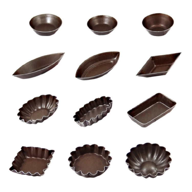 The Louis Tellier 285201 Gobel Mould Set is a comprehensive collection tailored for professional bakers and culinary enthusiasts, featuring 60 non-stick petits-fours moulds in a variety of sizes and shapes. This expansive set is designed to meet the diverse needs of the pastry industry, providing a wide range of moulds that cater to intricate and creative baking requirements. The non-stick surface ensures an effortless release of delicate baked goods, maintaining the integrity and presentation of each piece. Ideal for commercial kitchens and catering services, this set allows for the efficient production of high-quality petits-fours, a staple in gourmet patisseries and upscale dining establishments. The variety in mould size and shape provides bakers with flexibility and creativity, enhancing their culinary offerings with a professional touch. The Louis Tellier 285201 Gobel Mould Set is a testament to quality craftsmanship, making it a valuable addition to any kitchen looking to expand its petits-fours capabilities. Its well-thought-out design not only simplifies the baking process but also upholds the standards of excellence expected in the art of pastry making. This set embodies versatility and precision, essential attributes for achieving culinary excellence.