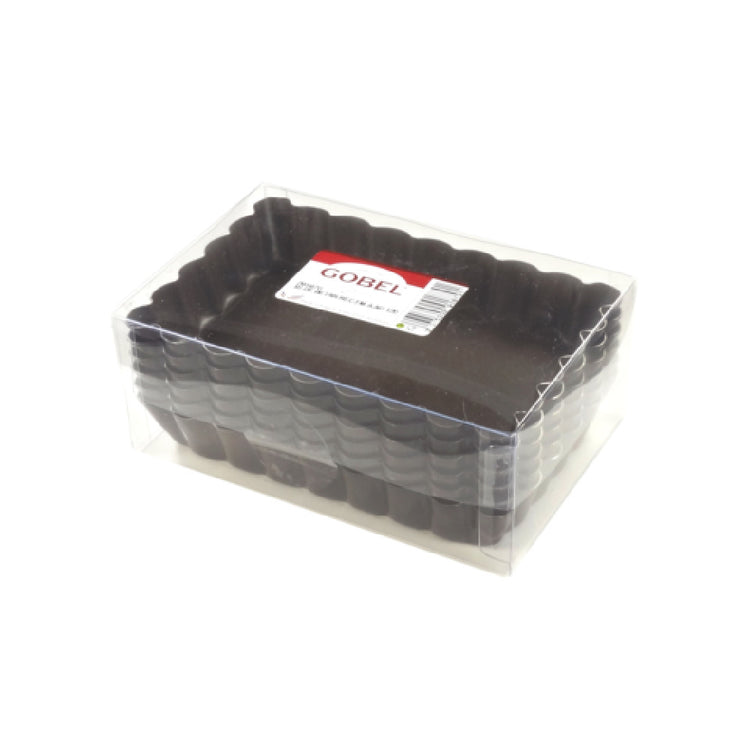 The Louis Tellier 291870 Tartlet Mould is a specialty kitchen tool designed for creating perfectly shaped tartlets, measuring 4.75 inches in width and 0.75 inches in depth. This rectangular fluted tartlet mould is crafted to meet the needs of culinary professionals and home baking enthusiasts alike, providing a non-stick finish that ensures easy release of baked goods and simplifies cleanup. A standout feature of this product is its removable bottom, facilitating effortless removal of delicate pastries without compromising their shape. Packaged in a convenient box of six, these tartlet moulds cater to the demands of high-volume production environments, such as patisseries and catering services, while also serving the home baker seeking to expand their repertoire of baked goods. The precise dimensions and fluted design contribute to the creation of visually appealing and uniform pastries, enhancing presentation in both commercial and domestic settings. The Louis Tellier 291870 Tartlet Mould is a versatile tool that underscores the importance of quality and precision in baking, offering a reliable solution for producing exquisite tartlets that meet the high standards of culinary excellence across different market segments.