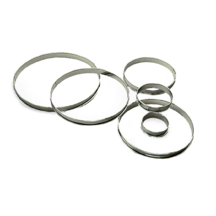 The Louis Tellier 824980 Tart Ring - a meticulously crafted culinary tool - boasts a diameter of 10.23 inches and a height of 0.78 inches, making it an essential component for creating perfectly shaped tarts. Constructed from durable stainless steel, this tart ring ensures longevity and resistance to corrosion, a vital feature for both professional kitchens and home bakers. The rolled edges provide a secure grip and stability, enhancing ease of use while ensuring a flawless tart presentation. With a 4/10 thickness, this device offers the ideal balance between sturdiness and flexibility, facilitating uniform baking results. The Louis Tellier 824980 Tart Ring is a preferred choice among pastry chefs for its precise engineering and reliable performance, catering to the needs of diverse market segments including gourmet restaurants, bakeries, and culinary schools. Its precise dimensions and high-quality material make it a versatile and indispensable tool in any baking repertoire, ensuring consistent and professional outcomes in tart preparation.