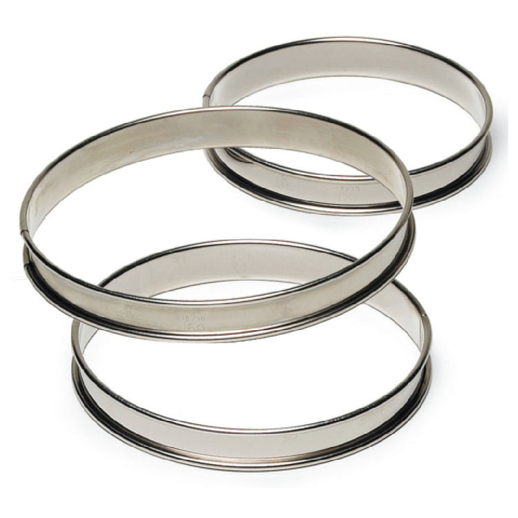 Louis Tellier 834960 Tart Ring 8.66" Dia. X 1.06"H Rolled Edges is a meticulously crafted kitchen tool designed to meet the needs of both professional chefs and home bakers. With a precision diameter of 8.66 inches and a height of 1.06 inches, this tart ring provides optimal dimensions for creating perfectly shaped tarts and quiches. The product features rolled edges, which enhance its durability and ensure a smooth, flawless finish for your baked goods. Constructed from stainless steel, the tart ring boasts a 4/10 thickness that contributes to its robustness and longevity, making it a reliable choice for frequent use. The deep structure of the ring allows for substantial fillings, catering to a variety of culinary creations. The use of stainless steel not only guarantees strength but also offers resistance to corrosion and easy maintenance, making it a practical and hygienic option for food preparation environments. This tart ring is an essential tool for anyone in the culinary industry, from pastry chefs seeking precision in high-volume kitchens to home bakers aiming for professional-quality results. Its simple yet effective design ensures that it is a valuable addition to any baking toolkit, providing consistent performance and exceptional results.