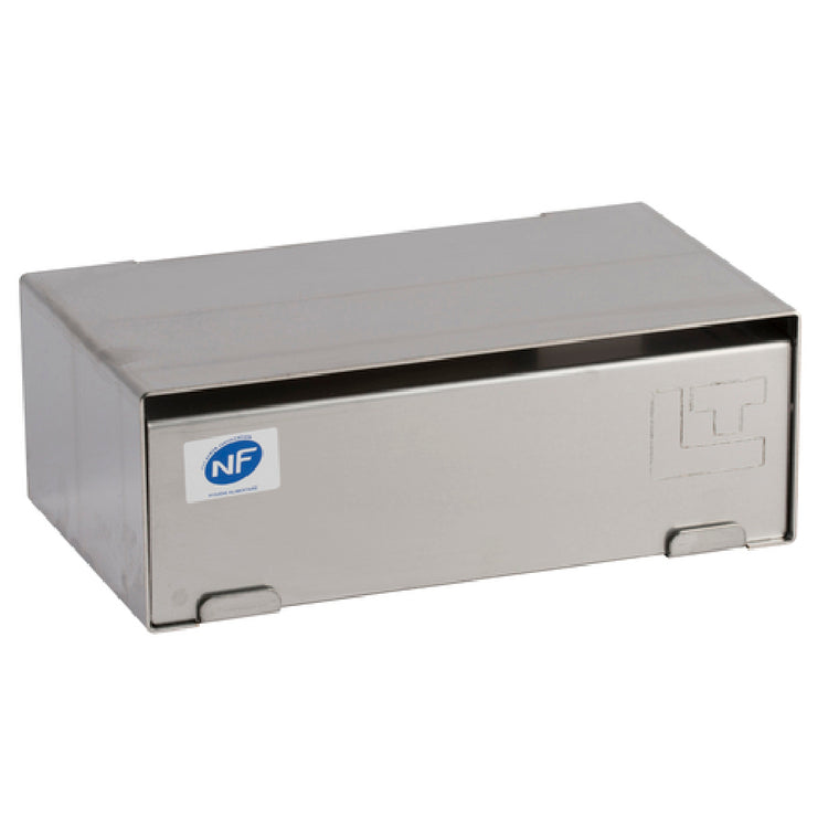 The Louis Tellier B1030 Disposable Glove Dispenser is a precision-engineered solution for efficient glove storage, measuring 3-31/100" x 5-1/2" x 3-1/2"H. Specifically designed for down side wall mounting, this dispenser includes all necessary hardware for hassle-free installation. Constructed from high-quality stainless steel, the B1030 offers durability and resistance to corrosion, making it an ideal choice for environments that prioritize hygiene and longevity. This versatile dispenser caters to various industry segments, from healthcare facilities that require quick and easy access to gloves, to food service operations needing a reliable glove storage system that maintains cleanliness and organization. The B1030's compact dimensions allow it to fit seamlessly into tight spaces while providing ample capacity for glove storage. Its robust construction ensures it withstands the rigors of daily use, affirming its value in busy settings where reliability is paramount. The Louis Tellier B1030 Disposable Glove Dispenser stands out as a practical and durable accessory for any industry requiring a consistent supply of disposable gloves, enhancing operational efficiency and hygiene standards. Its stainless steel build not only promises longevity but also complements the aesthetic of modern, professional environments.