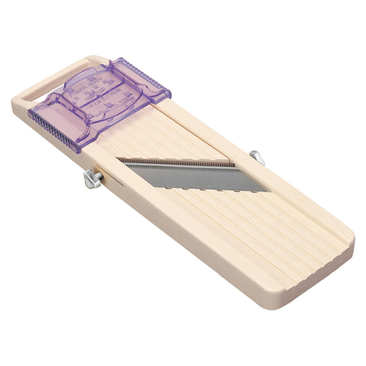 The Louis Tellier BN9 Benriner Japanese Kitchen Mandoline Slicer is a precise and versatile tool designed for culinary professionals and home chefs alike. This manual slicer features three stainless steel blades - fine, medium, and coarse - allowing for a range of slicing options that cater to diverse culinary needs. With an adjustable thickness ranging from 0.3 to 5mm, it provides the flexibility to achieve the perfect slice every time, whether for delicate garnishes or hearty salads. The slicer's construction is centered around ABS plastic, ensuring durability and lightweight handling, which is crucial for prolonged use in busy kitchen environments. Its ergonomic design is a testament to Japanese craftsmanship, offering intuitive use and a focus on safety during operation. The Louis Tellier BN9 is engineered to meet the demands of professional kitchens and food enthusiasts, delivering consistent performance and precision. Its simplicity and efficacy make it an indispensable tool for those who value quality and efficiency in food preparation. This mandoline slicer is a quintessential addition to any kitchen, enhancing the culinary experience with its reliable functionality and ease of maintenance. Whether used in a bustling restaurant or a home kitchen, its robust features make it a standout choice in food preparation equipment.