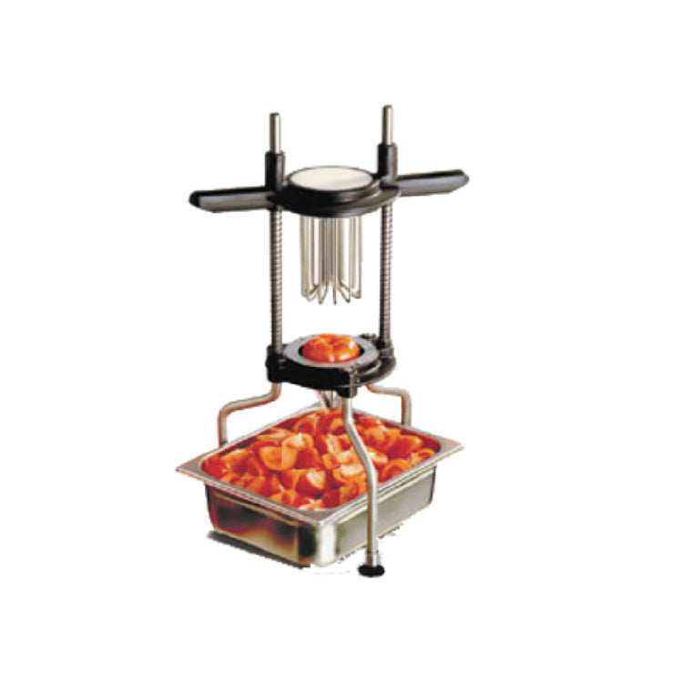 The Louis Tellier CAX108 Tellier Tomato Wedger cuts tomatoes into 8 precise pieces, combining the durability of stainless steel with the practicality of plastic components. This innovative kitchen tool is designed for efficiency and precision, making it an essential asset for professional chefs and home cooks alike. Its stainless steel blades ensure clean, even cuts, reducing waste and enhancing presentation in culinary applications. The lightweight plastic elements contribute to a user-friendly experience, emphasizing ease of use and maneuverability. The Louis Tellier CAX108 is versatile, catering to various segments within the food preparation industry, from high-volume restaurant kitchens to small catering businesses, and even home kitchens seeking to streamline their food prep processes. Its robust construction promises longevity and reliability, ensuring consistent performance over time. The integration of stainless steel and plastic reflects a thoughtful design that balances strength with convenience, making it a valuable tool for anyone in need of efficient tomato wedging capabilities. This wedger not only enhances culinary efficiency but also supports diverse market needs with its practical and reliable design.