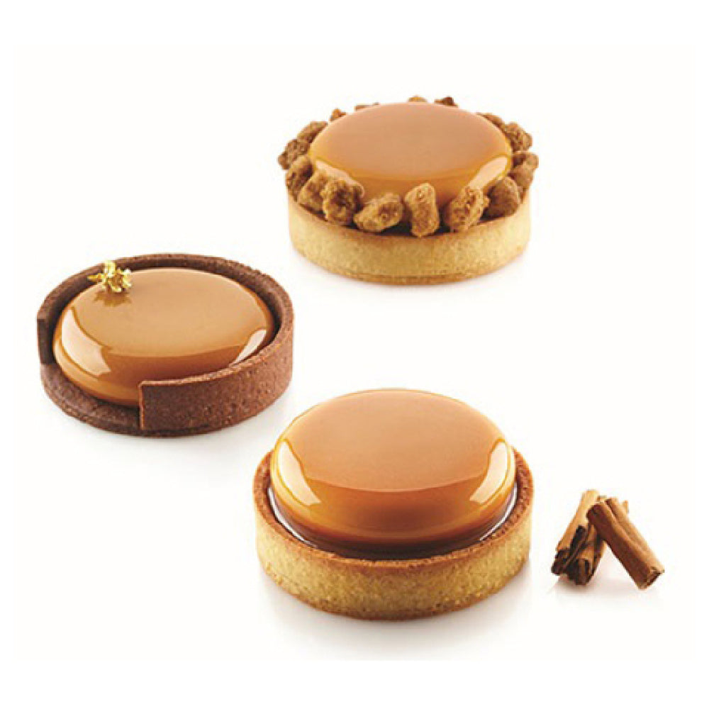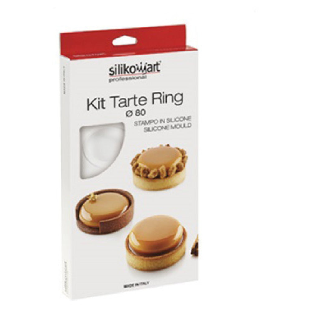 Louis Tellier KIT TART 8 Silikomart Tart Ring Mold Kit Includes: (6) 2.6" Dia. X 0.5"H White Silicone Ring Molds (each Cavity Holds 1.6 Oz.) & (6) 2.1" Dia. X 0.7"H Thermoplastic Composite Non-stick Rings