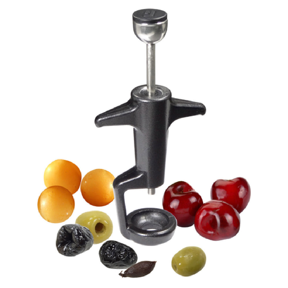 The Louis Tellier N4203 Tellier Olive/Cherry Pitter is a meticulously crafted kitchen tool, made in France, combining functionality with premium materials to cater to various culinary needs. Constructed from stainless steel and anodized aluminum, it ensures durability and long-term usage, making it an essential tool for both professional chefs and home cooks. This pitter is designed to efficiently remove pits from olives and cherries, enhancing the preparation process in commercial kitchens and at home. Its robust construction allows for effortless handling, promising a seamless experience in pitting fruits, which significantly reduces preparation time. The use of stainless steel not only contributes to its resilience but also ensures safe food contact, while the anodized aluminum body adds a lightweight yet sturdy characteristic, facilitating ease of use and storage. With its origin in France, known for its high-quality culinary tools, the Louis Tellier N4203 stands out in the market as a reliable and effective solution for fruit preparation, offering a blend of practicality and superior design. This product appeals to a range of market segments, from small eateries looking for efficiency to large-scale operations requiring durability, making it a versatile addition to any kitchen setup.