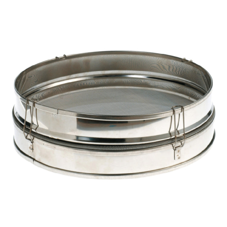 The Louis Tellier NC5064660 Sieve 14.74" Dia.-Interchangeable Canvases is an expertly crafted tool designed for precision and versatility in culinary applications. With a diameter of 14.74 inches, this sieve is built to accommodate various volumes of ingredients, providing efficiency for tasks in both small and large-scale operations. Its standout feature is the interchangeable canvases, which allow users to adjust the mesh size to suit specific needs, making it highly adaptable for different types of sifting and straining. The medium mesh option included in this model ensures a balance between fine sifting and efficient throughput. Crafted from high-quality stainless steel, the sieve promises durability and resistance to corrosion, ensuring long-term reliability even in demanding kitchen environments. This makes the Louis Tellier NC5064660 an indispensable tool for professional chefs, bakers, and home cooking enthusiasts who value precision and durability in their kitchen equipment. Its robust construction and versatility cater to diverse market segments within the culinary industry, enhancing productivity and maintaining consistency in food preparation. Whether used in commercial kitchens or gourmet home setups, this sieve supports detailed culinary tasks with its thoughtful design and superior materials.