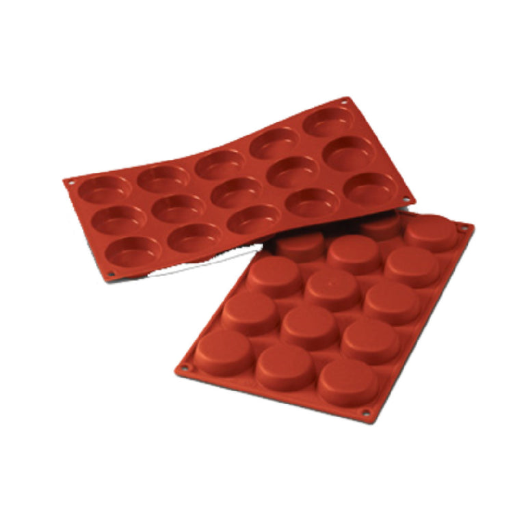 The Louis Tellier SF044 Siloconflex Mold Flan Mold is a meticulously designed kitchen tool crafted for culinary professionals and baking enthusiasts alike. This single mold features 15 individual sections, each measuring 0.55 inches in height and 1.96 inches in diameter, ideal for creating perfectly uniform and delicate flans or other similar desserts. The overall dimensions of the mold are 7 inches by 11-3/4 inches, providing ample space to work with multiple portions simultaneously. Made from high-conductivity alimentary pure silicone, this mold ensures even heat distribution for consistent cooking results. The silicone is non-toxic and non-stick, which promotes easy release and quick cleanup, reducing the need for additional greasing or lining. These features make it an essential tool for those seeking efficiency and precision in their baking processes. This product caters to various segment markets within the culinary industry by addressing the demand for reliable, safe, and high-performance baking accessories. Its practical design not only enhances the quality of baked goods but also streamlines kitchen operations, making it a valuable addition to both commercial establishments and home kitchens. With its superior material composition and functional design, the Louis Tellier SF044 Siloconflex Mold Flan Mold stands out as a versatile and efficient choice for creating exquisite desserts.
