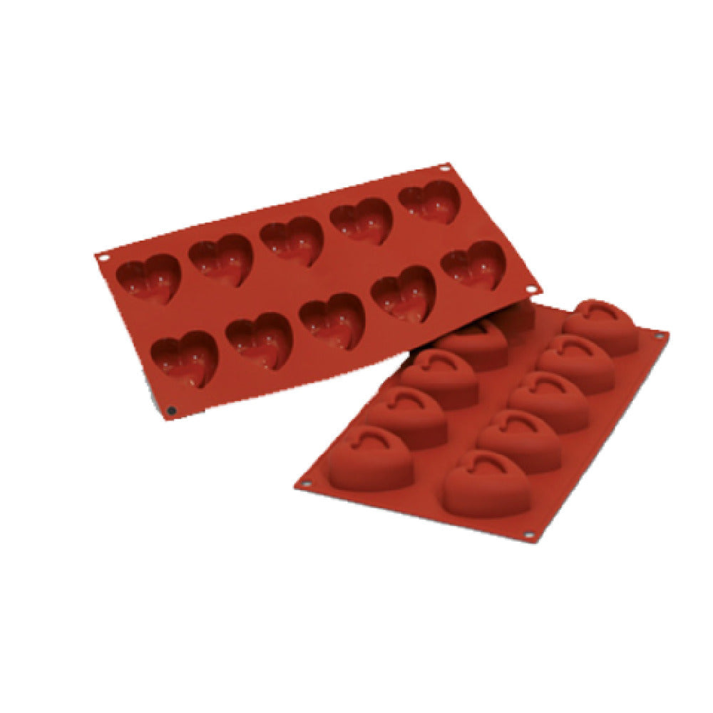 The Louis Tellier SF088 Siloconflex Mold Passion (1) Mold is an expertly crafted baking tool designed for culinary professionals and enthusiasts alike. This mold is constructed from high-conductivity alimentary pure silicone, ensuring non-toxic and non-stick properties that make it both safe and efficient for food preparation. With an overall dimension of 7" x 11-3/4", this mold features ten individual sections, each measuring 1.14"H x 2.2"W, providing consistent and precise portions for a variety of culinary applications. Its unique design is especially beneficial for pastry chefs and bakers aiming to produce intricate and uniformly shaped creations. The Louis Tellier SF088 is engineered for high performance in professional kitchen environments, offering exceptional durability and heat conduction to support the creation of perfect pastries, desserts, and other culinary delights. Its specialized construction from alimentary silicone enhances its reliability and longevity, making it an indispensable tool for those seeking consistent quality in their culinary presentations. The mold's non-stick surface ensures easy release of contents, simplifying the cleaning process and maintaining the integrity of delicate creations. This versatile mold is a valuable addition to any professional kitchen, seamlessly integrating precision and quality to enhance culinary artistry.