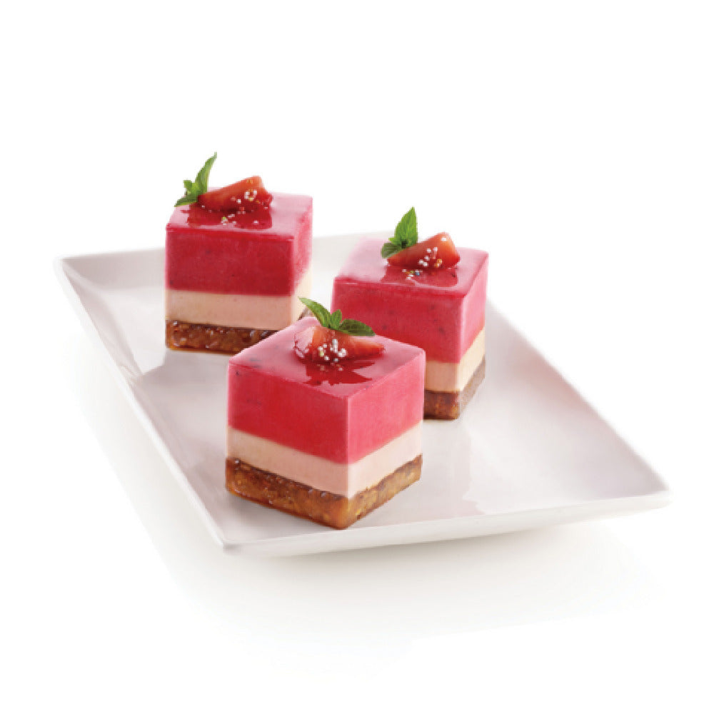 The Louis Tellier SF104 SiliconFlex Baking Mold - 6 Cube Compartment 1.96"H is an innovative culinary tool crafted for efficiency in professional and home baking environments. This baking mold features six cube compartments, each with a height of 1.96 inches, providing bakers with consistent and uniform results. Engineered from high-conductivity alimentary pure silicone, it ensures even heat distribution for perfectly baked confections. The material is non-toxic, assuring peace of mind regarding food safety standards, while its non-stick properties facilitate effortless release, reducing the risk of damage to delicate creations. This characteristic makes it particularly advantageous for intricate dessert preparations that require precise detailing. The SF104 is ideal for use in diverse segments of the culinary industry, ranging from artisanal bakeries to gourmet restaurants, or even home kitchens that aspire to professional-grade results. Its durability underpins repeated use, making it a cost-effective addition to any kitchen's repertoire. The Louis Tellier SF104 SiliconFlex Baking Mold embodies a blend of functionality and reliability, meeting the varied needs of culinary professionals who demand precision and quality in their baking endeavors.