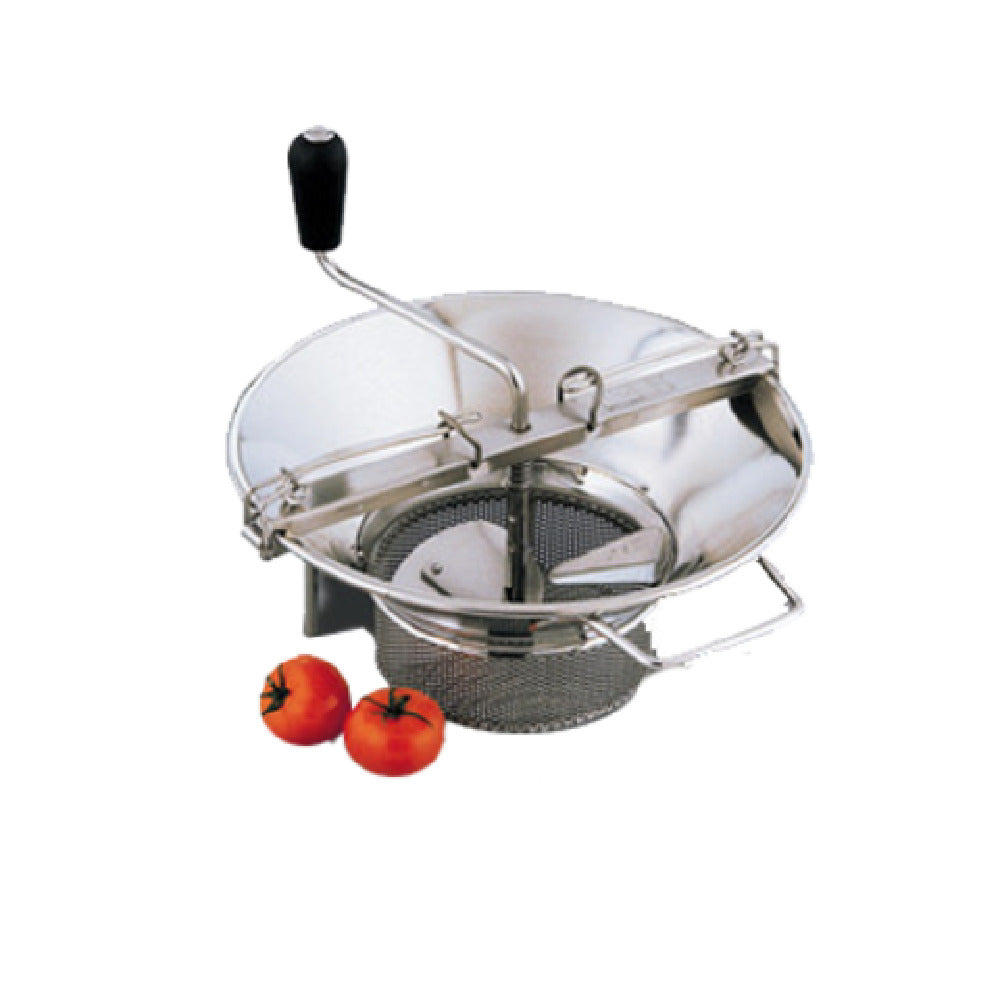 The Louis Tellier X5 Tellier Restaurant Food Mill is a high-capacity appliance, distinguished by its 8-quart capability and 14-inch top diameter, making it an essential tool for professional kitchens that require efficient food processing. With a bottom diameter of 7-1/4 inches and a depth of 14-3/4 inches, this food mill is designed to handle large volumes of food with ease, ensuring smooth and consistent results. Constructed from durable stainless steel, the Louis Tellier X5 is built to withstand the demands of a busy restaurant environment, providing longevity and reliability. It comes equipped with a customizable feature, allowing users to select one grid of choice to suit their specific processing needs. This adaptability makes it suitable for a wide range of culinary applications, from sauces to purees, meeting the diverse demands of different segment markets within the foodservice industry. The Louis Tellier X5 Tellier Restaurant Food Mill is a robust and versatile kitchen tool, offering professional chefs an efficient solution for producing high-quality results consistently.