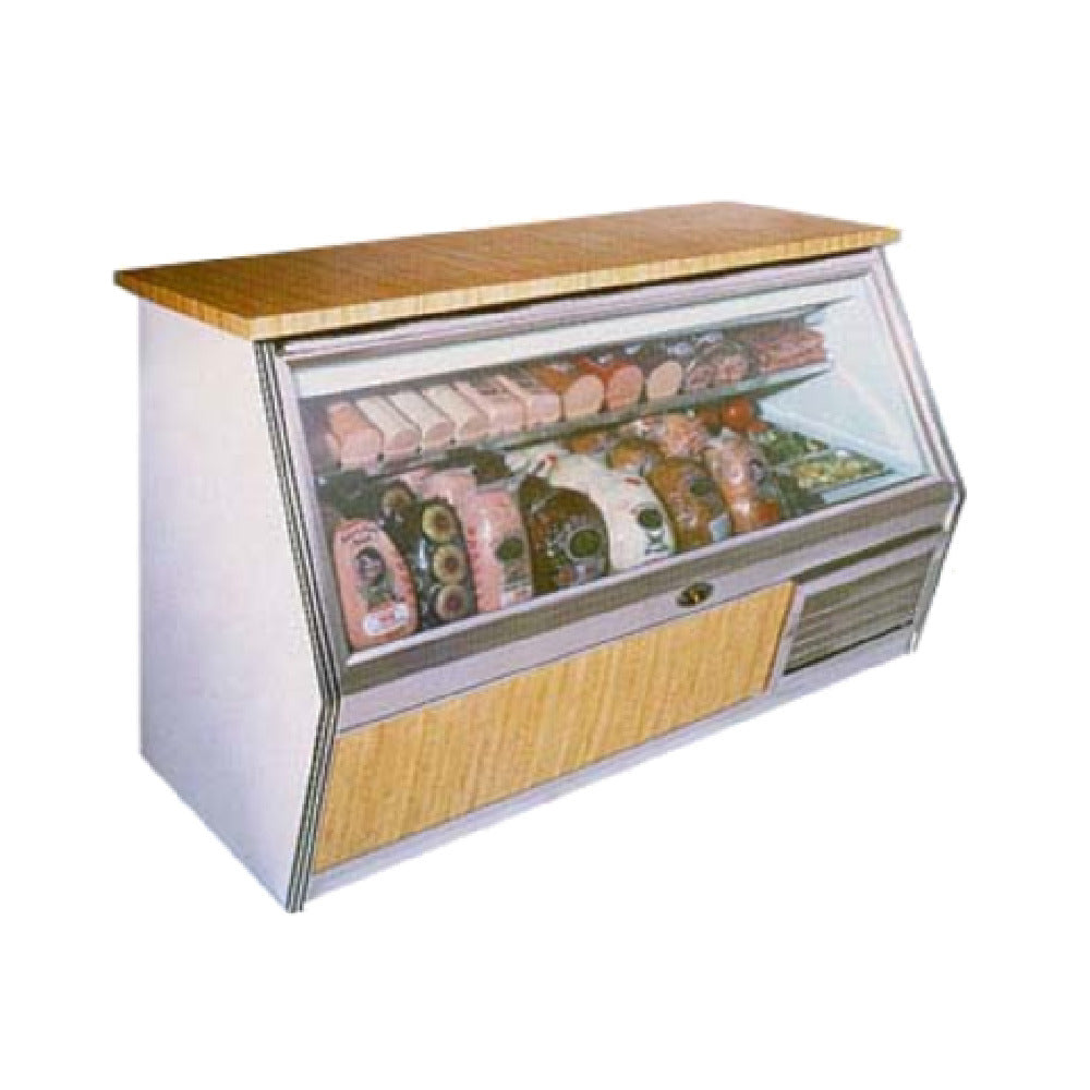 The Marc Refrigeration FIC-10 S/C Counter High Merchandiser is an exemplary refrigeration solution, measuring 120 inches in length, designed to meet the diverse needs of food retailers. Featuring a triple pane glass front, it ensures high visibility and energy efficiency, making it ideal for showcasing a range of products. The merchandiser comes with a single mezzanine shelf, providing ample display space while maintaining a compact design perfect for counter-top settings. The interior boasts a white aluminum finish, enhancing the visibility of the displayed items, while the exterior is adorned with a durable laminate front and top for a refined appearance. Adding to its aesthetic appeal is the mirror stainless steel trim, which lends a touch of sophistication. Equipped with a self-contained refrigeration system that includes a condensate evaporator and gravity coil, this unit operates with a 1/2 horsepower motor, ensuring optimal cooling performance. Certified by NSF 7 standards, it guarantees compliance with health and safety regulations, making it a reliable choice for grocery stores, delis, and convenience stores. The Marc Refrigeration FIC-10 S/C is engineered for excellence, offering a seamless blend of functionality and style for the commercial refrigeration sector.