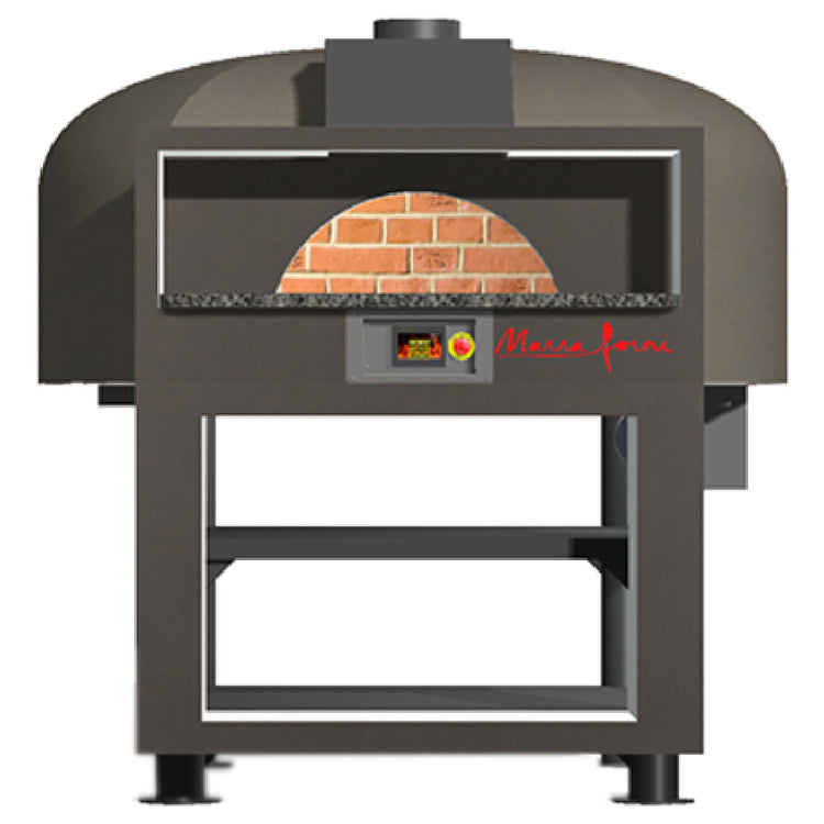 Marra Forni, EF130G, Facade Gas Fired Oven, enclosed, 51.18" dia. interior brick deck, (10-12) 8", (9-11) 10", (8-10) 12" or (6-7) 16" pizza capacity, turbo burner, integral exhaust system, brick dome, stainless steel flue collar & adapter, black facade, steel stand, 120v/60/1-ph, 12.0 amps, 84,000 BTU, cETLus, ETL-Sanitation, Made in USA