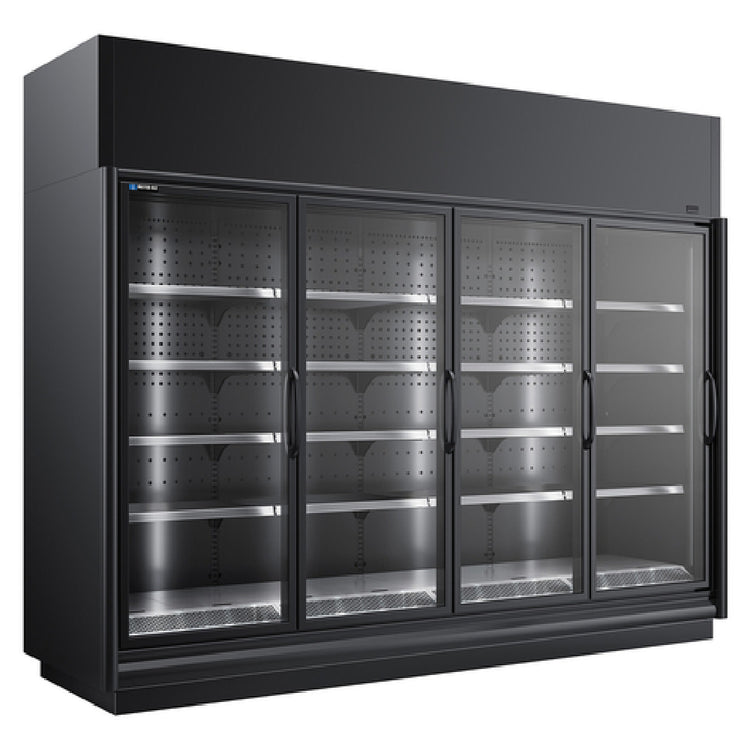 The Master-Bilt BEL-4-30SC Endless Low-Temperature Merchandiser Self-contained 122.88" W is a highly efficient cooling unit designed for various commercial applications. With its expansive width of 122.88 inches, it features four 30-inch-wide hinged glass door sections, providing ample display space for perishable goods. This merchandiser includes a total of 20 shelves, each equipped with tag molding, enhancing organization and product visibility. The LED lighting system ensures energy-efficient illumination, highlighting products with clarity. Constructed with painted textured galvanized steel, both the interior and exterior promise durability and a sleek appearance. The unit's bottom-mounted coil design optimizes cooling performance, while the MSLD017EB-ENQ condensing unit ensures sustained operation at low temperatures. The product requires an additional 20 inches in height for the top shroud, which is shipped loose, thus allowing for flexible installation. Certified by cULus and UL EPH, the merchandiser meets rigorous safety and sanitation standards, making it suitable for food service environments. Proudly made in the USA, the Master-Bilt BEL-4-30SC is a reliable choice for supermarkets, convenience stores, and other retail settings looking to maximize display efficiency and product preservation.
