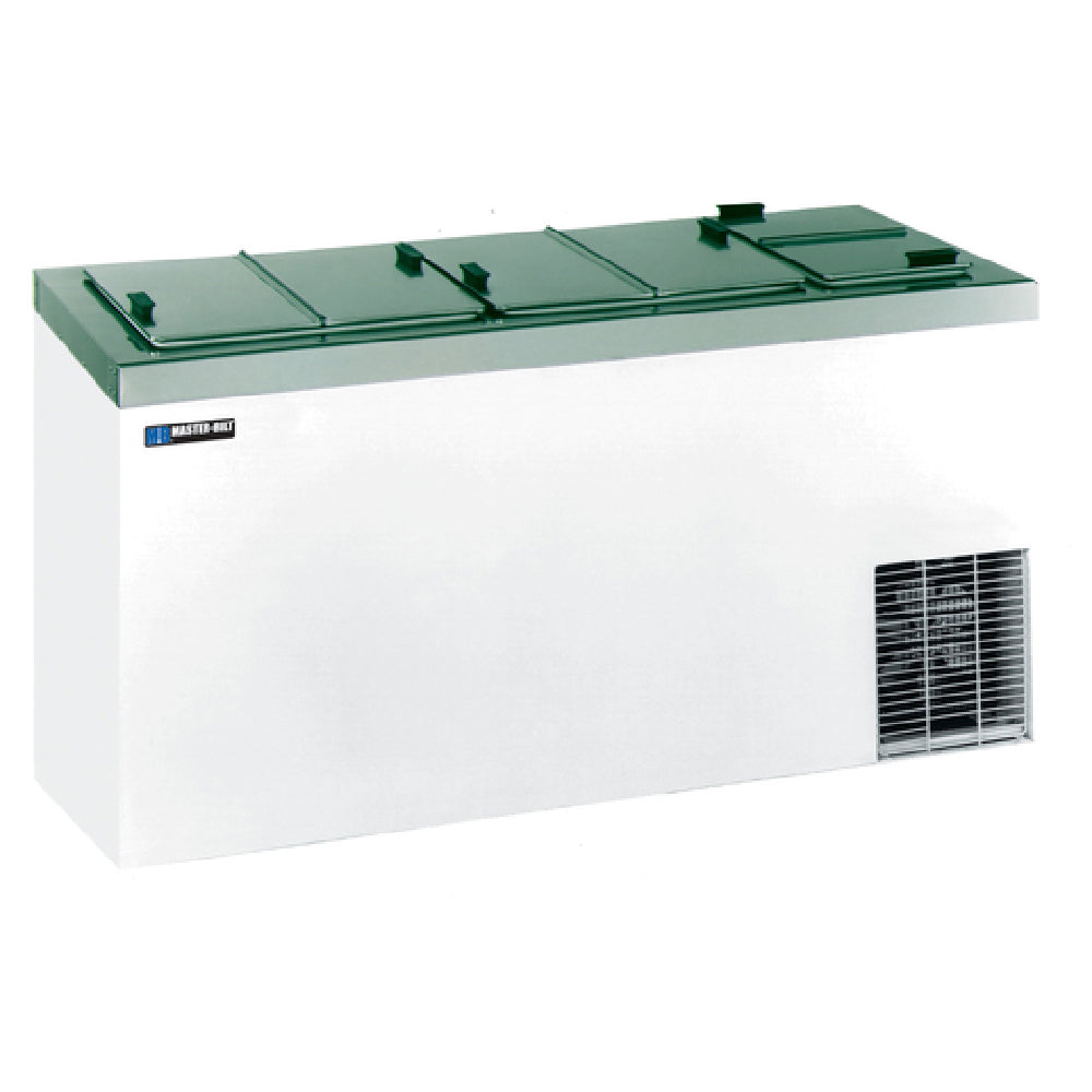 The Master-Bilt DC-10D Ice Cream Dipping Cabinet is a versatile refrigeration unit designed to cater to the diverse needs of ice cream retailers. This cabinet can accommodate up to 14 three-gallon containers for dipping, while also providing storage for an additional 11 three-gallon containers. The unit operates with a cold-wall evaporator system, ensuring consistent temperature maintenance between 10°F and -10°F. Its exterior is constructed from painted galvanized steel, combined with a galvanized steel interior for enhanced durability. The stainless steel top is equipped with an anti-condensate heater to prevent moisture build-up, further enhancing its operational efficiency. Featuring flip lids, this cabinet offers easy access to stored products. The unit is powered by a 1/3 horsepower motor and operates on 115 volts with a 60 Hz single-phase electrical connection, drawing 5.4 amps. It includes a 9-foot cord and utilizes a NEMA 5-15P plug. Certified by cULus and NSF, the Master-Bilt DC-10D ensures compliance with rigorous safety and sanitation standards. This dipping cabinet is an essential tool for ice cream parlors and dessert establishments, providing a reliable and efficient solution for both storage and service of frozen products.
