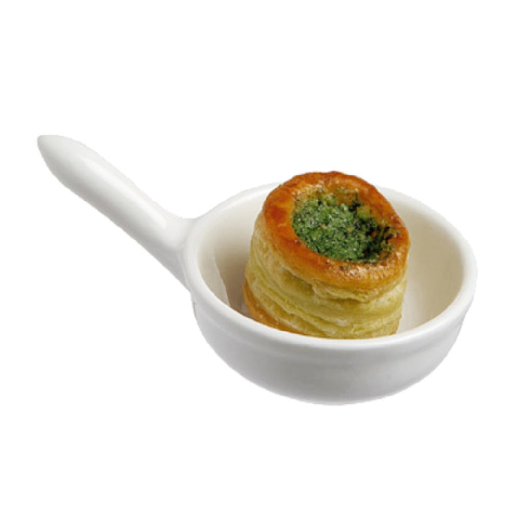 The Matfer 051354 Petit Pan Bowl 2oz is a versatile addition to any kitchen, offering precision and elegance for a variety of culinary applications. Crafted by Matfer Bourgeat, this bowl features a 2-ounce capacity, making it perfectly suited for both professional and home chefs who prioritize portion control and presentation. Its dimensions - 2-1/2 inches in diameter and 3-3/4 inches in length - provide a compact yet functional design, ideal for serving tapas, sauces, or condiments. The round shape enhances aesthetic appeal while ensuring easy handling and storage. Constructed from high-quality porcelain, this bowl combines durability with a refined finish, suitable for both everyday use and special occasions. Sold in a pack of six, the Matfer 051354 Petit Pan Bowl is designed to cater to the needs of commercial kitchens and catering services, as well as discerning home cooks who appreciate quality and style. The porcelain material not only offers a sophisticated look but also ensures long-lasting performance and resistance to thermal shock. Each pack is meticulously packed to ensure the bowls arrive in pristine condition, ready to elevate your dining experience. This product represents a perfect blend of functionality and elegance, tailored for diverse market segments in the culinary industry.