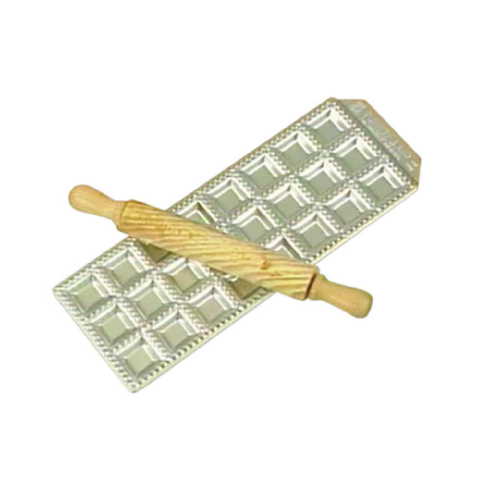 The Matfer 073200 Imperia Ravioli Mold is a precision-crafted kitchen tool measuring 10-2/3"L x 5-1/2"W, designed to create 36 perfectly uniform 1-3/8" x 1-3/8" ravioli squares in a single use. This mold is constructed with pressed aluminum on a steel base, providing a robust and durable structure essential for consistent culinary results. It features rubber feet, which prevent slipping and ensure stability on any countertop during use. The inclusion of a wooden rolling pin complements the mold, allowing for seamless integration of dough into the mold’s cavities, ensuring each ravioli maintains its shape and size. Suitable for both professional chefs and home cooking enthusiasts, this ravioli mold stands out for its ease of use and efficiency, making it a valuable addition to any kitchen. The Matfer 073200 Imperia Ravioli Mold is backed by a 5-year warranty, underscoring the manufacturer's commitment to quality and durability. This product is particularly appealing to culinary professionals who value precision and reliability, as well as home users seeking to enhance their pasta-making experience with a professional-grade tool. Its thoughtful design caters to diverse market segments within the culinary industry, offering both performance and longevity.