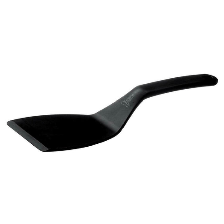 The Matfer 112429 Exoglass® Pelton Spatula 12"L x 3-1/2" Wide Top Solid is a premium kitchen tool engineered for professional and home chefs alike, emphasizing its unique features and benefits. Crafted in France, this spatula is renowned for its one-piece construction made from durable composite material, ensuring longevity and reliable performance. Its flexible blade is designed to be non-porous, maintaining a hygienic surface that resists retaining food particles and odors. The black Exoglass® material is heat resistant up to 430°F, making it suitable for a variety of cooking applications without compromising integrity or safety. Additionally, the spatula's non-stick surface contributes to effortless food release and prevents scratching, preserving the quality of your cookware. Measuring 12 inches in length with a 3-1/2 inch wide top, this spatula provides optimal control and versatility for stirring, flipping, or serving. The dishwasher-safe construction allows for convenient cleaning, catering to the demands of fast-paced culinary environments. The Matfer 112429 Exoglass® Pelton Spatula represents a perfect balance of innovation and practicality, appealing to diverse market segments including restaurants, catering services, and home cooking enthusiasts seeking reliable, high-performance kitchen tools.