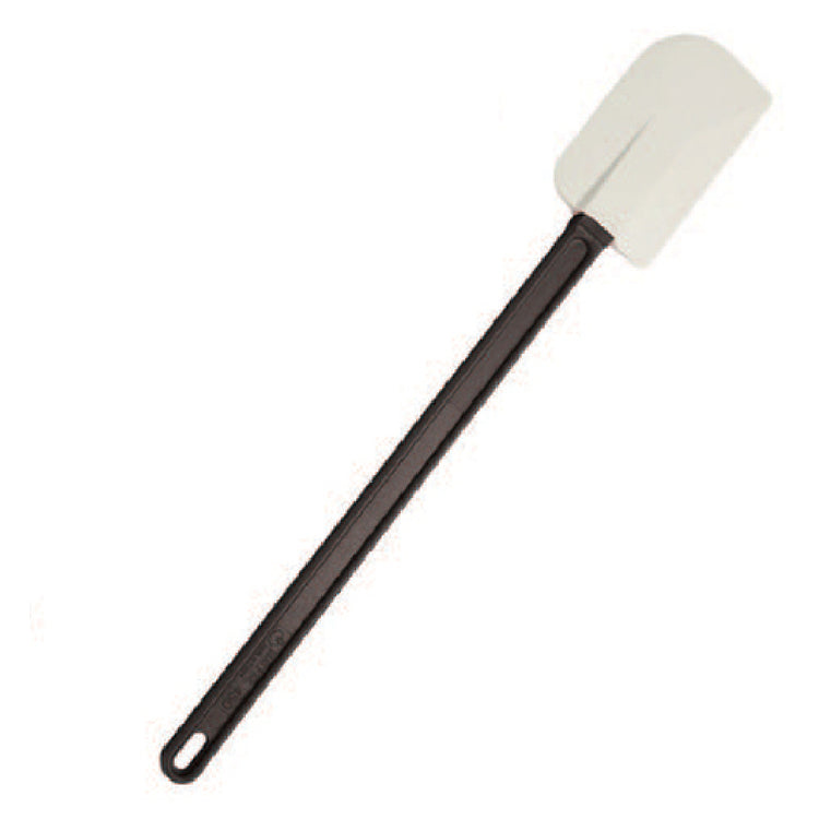 The Matfer 113745 Elveo Spatula 17-3/4"L Square Angle Paddle Blade is a professional-grade utensil designed for the diverse needs of culinary experts. With its flexible square angle paddle blade, this spatula ensures precision in handling and maneuvering ingredients, making it indispensable in both commercial and home kitchens. The spatula is constructed with Exoglass® composite plastic, known for its durability and resistance to high temperatures, supporting heat exposure up to 500°F. This makes it suitable for a wide range of cooking techniques, whether you're flipping delicate crepes or stirring robust sauces. The 17-3/4 inches length provides ample reach for handling food in deep pots or large pans, enhancing safety and convenience. It features a practical hanging hole that allows for easy storage, optimizing kitchen organization. Additionally, the Matfer Elveo Spatula is dishwasher safe, facilitating effortless cleaning and maintenance, crucial for fast-paced culinary environments. Its black color and sleek design provide a professional appearance that complements any kitchen decor. Designed with precision and utility in mind, this spatula is a valuable tool for chefs, bakers, and cooking enthusiasts seeking reliability and performance in their kitchenware.