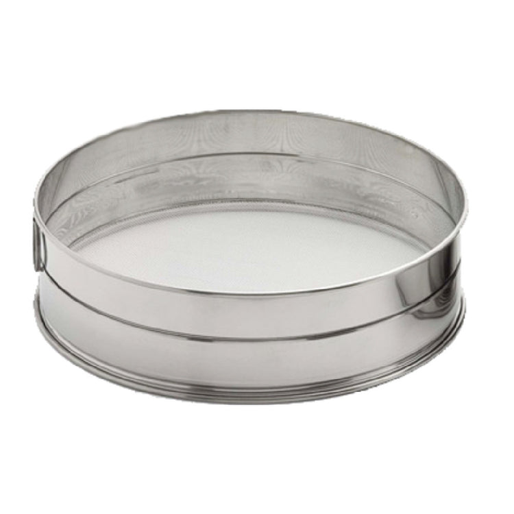 The Matfer 115082 Sieve 8-2/3" Dia. Round is a premium tool engineered for precision and durability in professional kitchens. With a diameter of 8-2/3 inches, this sieve offers a perfect balance between size and functionality, catering to various culinary tasks. The key feature is its 1.28 mm mesh, which provides an ideal sieve size for refining flour, sifting dry ingredients, or straining liquids, guaranteeing smooth and consistent results. Constructed from high-quality stainless steel, this sieve is not only resistant to rust and corrosion but also ensures longevity and easy maintenance, making it a reliable asset for chefs and bakers alike. This sturdy construction supports frequent use in busy kitchen environments, delivering a robust performance that withstands the demands of high-volume food preparation. The Matfer 115082 Sieve appeals to culinary professionals in restaurants, bakeries, and catering services, where precision and reliability are paramount. Its design and material make it a versatile tool, useful for tasks ranging from sifting flour to straining purees, ensuring a consistent texture in culinary creations. This sieve represents Matfer Bourgeat’s commitment to quality, providing a functional and enduring tool that enhances kitchen efficiency and performance.